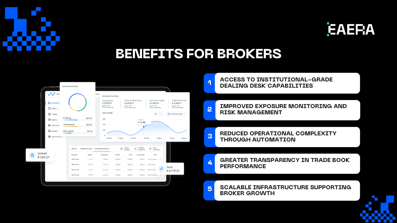 This unified strategy guarantees that brokers can handle trading risk and operational workflows in a single, scalable EAERA-powered environment.